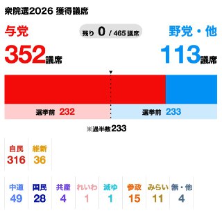 在野党方面,中道改革联合的议席相比之前大幅减少。